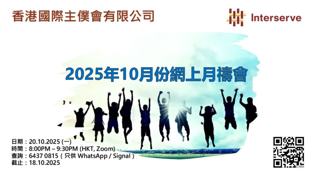 2025年10月份月禱會,禱告記念宣教士及工場情況,同心同行。