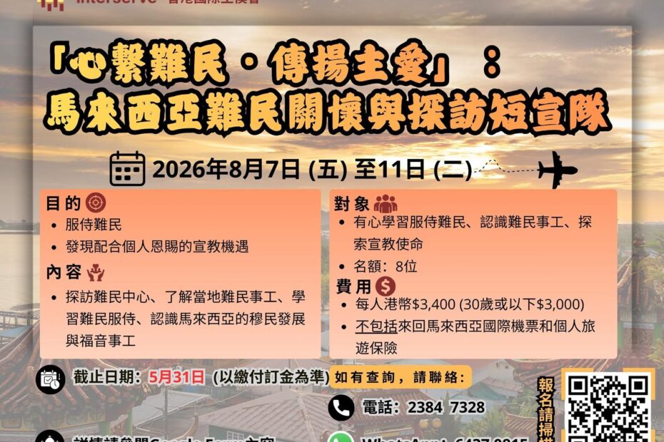「心繫難民 · 傳揚主愛」:馬來西亞難民關懷與探訪短宣隊